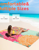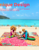 - 【Sandfree & Waterproof & Durable】The beach mat is made of sand-resistant, waterproof fabrics, don't worry about the mat getting wet and dirty, it’s easily cleaned, just wipe and shake the sand with no effort! The Silky Soft Fabric let you lie comfortably while enjoying a pleasant day on the beach. Exquisite stitched technique for maximum strength and durability, not easy to damage.