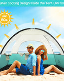 • [ UPF50+ Design]-Brace Master Beach Tent has a silver-coated interior design that can withstand 98%+ UV rays. Effectively protect you and your family's skin from sunburn in Summer.